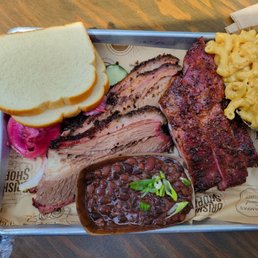 The Brisket Shoppe nails BBQ every time. As a fan of Texas-style BBQ, I can say their brisket rivals the best. I usually go for the ribs too, but they were sold out--always a good sign. This time, I had brisket and mojo pork with brisket & beans and waffle fries with gravy. To my surprise, I got a tasty brisket bon bon as well. I couldn't resist the "Almost Famous" banana pudding, and it didn't disappoint. Everything was cooked to perfection, and the portions were generous enough for leftovers. The food here is consistently excellent, and the staff is always friendly. This is my go-to BBQ spot in Tampa.