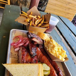 Just start by saying that I understand why this place is so popular. This is some of the best BBQ in Tampa, especially the brisket! Danny (owner) and his staff were incredibly hospitable to me and my family. They introduced us to the private room (can be reserved) which offered a/c and privacy. There is a lot of outdoor seating but very limited indoor. I opted for the two meat meal with ribs, brisket, baked beans w/brisket, and Mac & cheese. Everything was great! We also had the bread puffy for dessert. It was a nice cap to close off the meal Highly recommend this place. Quite possibly the best in Tampa. Great job Danny